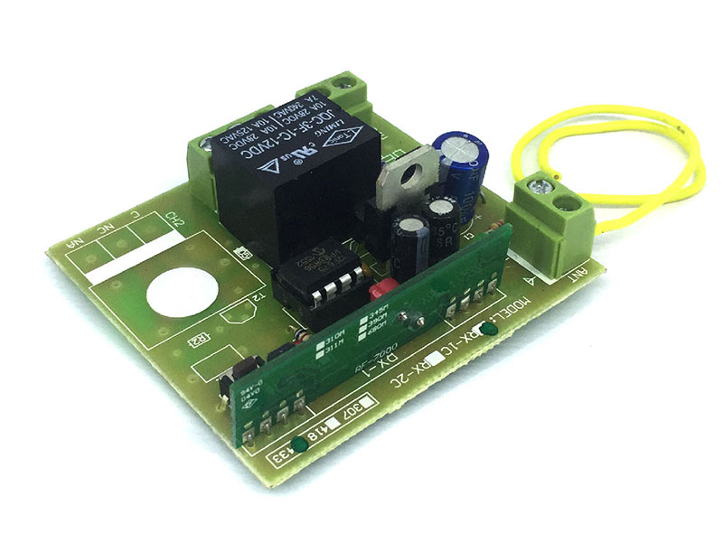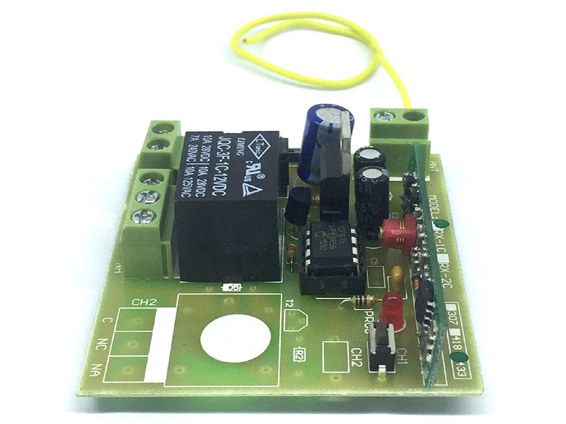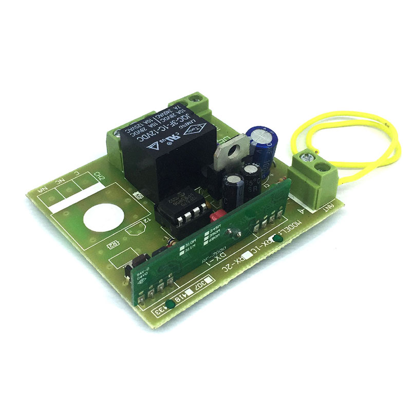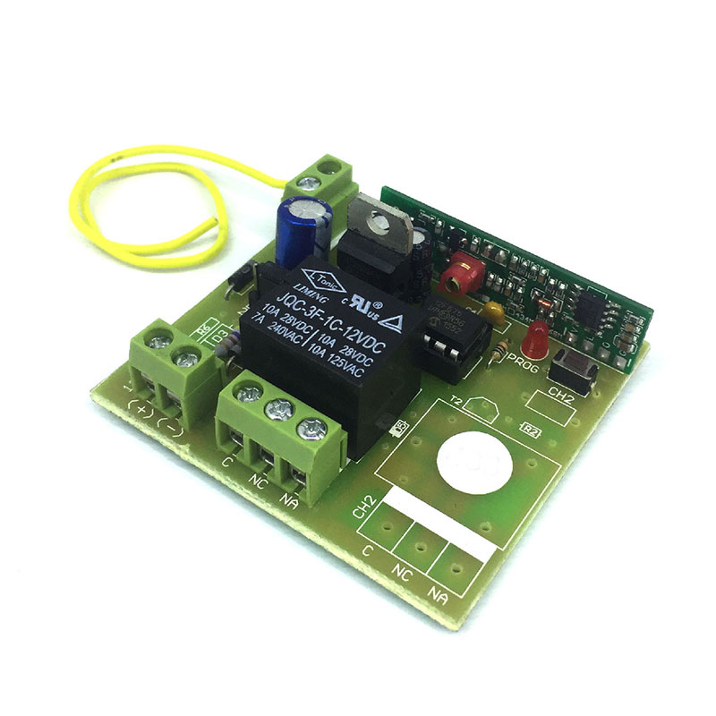 Receptor universal 1 canal multi-code, con posibilidad de conexión adaptable a diferentes electrónicas del mercado, alimentación de 12v/24v, tanto en corriente alterna como en corriente continua. Capacidad de grabación de transmisores de 40 unidades (botones). Programable en modalidad seguidor o retenido.